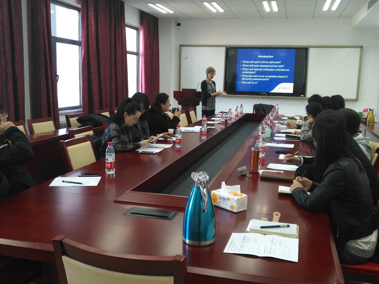 此次培训为期二天,由来自英国的SQA AD项目资格实施经理(Qualification Implementation Manager)Janet Strain担任培训教师。培训内容涉及所开设专业的教学计划设计与组织、课程大纲、教学方法、考试方式以及评分标准。 经过两天的培训,参会教师和项目管理人员掌握了SQA AD项目教学实施的整个流程,对认真执行质量标准、保障项目高水平运转有了更加深刻的理解。